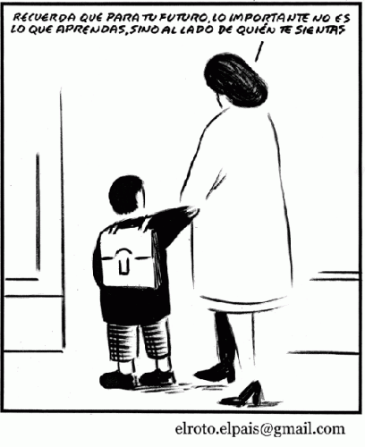 El chiste de El Roto es, desgraciadamente, un reflejo del valor que posee la educación en España. Existen colegios privados y concertados cuya misión principal es establecer relaciones para un futuro. Todos conocemos centros de ese tipo.