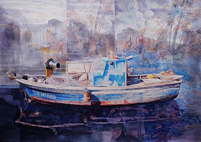 Por él conocí también la semiótica, por ejemplo, y la necesidad de pensar y crear, siempre investigaba. Y no dejaba de pintar. A épocas dolorosamente, de continúo como una necesidad adictiva y gozosa. Su pintura extrema el perfeccionismo. Cada fragmento es un cuadro en sí mismo. Lo era en el óleo, lo es en la acuarela a la que ha reivindicado.