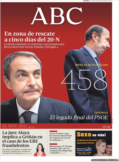 Los ciudadanos se informan por otras vías, menos mal. Porque de hacerlo por algunos medios tradicionales se encontrarían con el par de panfletos ultra en diaria cruzada patriótica. ABC atribuye a la inquina anglosajona (tenemos de por medio el Gibraltar redivivo) el desprestigio de nuestra economía y política.