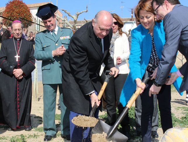 Las fotos están tomadas el 15 de Marzo de 2014. Siglo XXI, segunda década ya. El ministro del interior escava en el suelo (dicen que para hacerle sitio a la primera piedra de un cuartel). Colea la muerte de los inmigrantes en Ceuta, su gestión y todo lo que ha rodeado el caso. Hasta la destitución del jefe de inmigración local que contó algo que no gustó al ministro. A su lado, en la misma tesitura, escarbando el suelo, la aún presidenta de Navarra, ahíta de acusaciones de corrupción. Contemplan la escena un guardia civil sonriente con enorme tricornio y un cura a la más vieja usanza.
