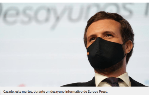 No hay ironía o sarcasmo que supla la indignación que produce ver esa sociedad que se deja engañar contra su propia vida o la de otros aunque no les importe. A Pablo Casado le ha hecho caso el Financial Times. Dice que hará un gobierno de «salvación nacional», siempre en su línea. El amigo y protector del húngaro Viktor Orbán. O uno de los cachorros, con Ayuso y Abascal, del Aznar constructor de lobbies mientras siguen impunes sus tropelías. El ser capaz de usar, con mentiras, hasta atentados en provecho político sin mirar el historial de vigas en el ojo de su partido.