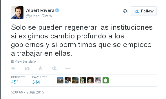 Rivera hoy se explicaba, el cambio moderado es ya profundo. La Andalucía socialista y el Madrid del Partido Popular. Una regeneración ejemplar con pactos firmados y todo.