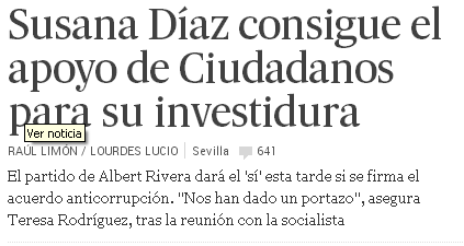 La constitución del Parlamento andaluz es tema destacado del día, sin duda, que promete mucho en versiones. Ya he oído alguna -en apenas media hora- muy ofendida porque los grupos no apoyen a Susana Díaz que, por lo que se ha demostrado, calculó muy mal la jugada.