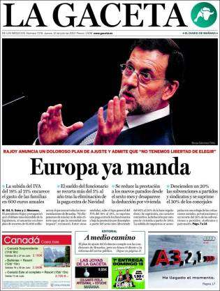 Un país rescatado, tutelado, que se mueve al socaire de lo que le mandan desde afuera en las directrices económicas y que no deja de meter la pata en su escasa autonomía en ese terreno. Ah, pero en la involución ideológica galopante, en eso sí es el PP extraordinariamente eficaz, opera como una apisonadora sin tregua ni pausa.
