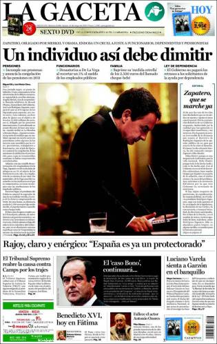 Se nos cae el país a pedazos, la ruina y el descrédito no pueden ser mayores. La ineficacia de este gobierno llega al punto de que el ministerio de exteriores –por iniciativa de su secretario de Estado para la UE– anuncie una acción conjunta con los gobiernos de Francia e Italia y se vea obligado a retirar a hurtadillas la nota de la web de la Moncloa mientras los gobiernos implicados tildan de “alucinante” la actitud de España. Es que en el franquismo se hacía así. La verdad no importaba si convenía.