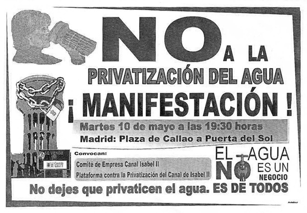 La mayoría absoluta y colmada que van a darle los votantes a Esperanza Aguirre nos aboca al despojo de un servicio esencial que aún es nuestro: el agua. Ante ello –como ante tantas cosas- solo cabe la información.