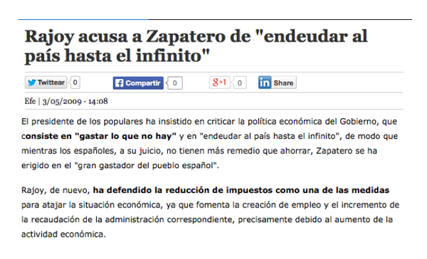 En el diario de la corrupción, tenemos hoy la declaración en juicio de uno de los grandes conseguidores de la Gürtel. ‘ El Bigotes’ apunta al marido de Cospedal y dice: “Venía a soltar ‘el mondongo’ y no le he visto en ningún banquillo”. Los espectadores del Telediario de TVE han recibido una versión muy recortada de la realidad, el marido de la ministra de Defensa no existe para la tele pública. En nivel presunto, surge la número dos del PP de Málaga pagándose un máster y cenas de lujo con dinero público.