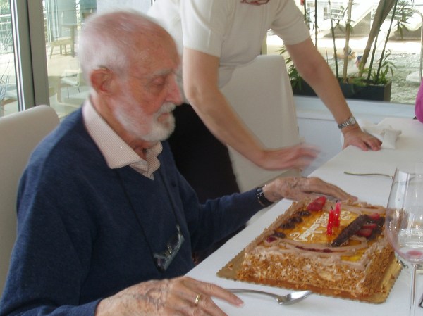 Aguijón constante para los desmanes, en su longevo cumpleaños José Luis Sampedro reivindica los sentimientos y la esperanza. Y el humor. Cuando el camarero llegó a su lado, con el cava, le preguntó: «¿Cómo ha adivinado Vd que soy yo el de los 94 años?» Dice que es feliz. Por todo lo que le esta pasando en los últimos tiempos. Por los afectos que le rodean. Sobre todo, lo sé, por Olga maravillosa, su otro yo, su equipo.