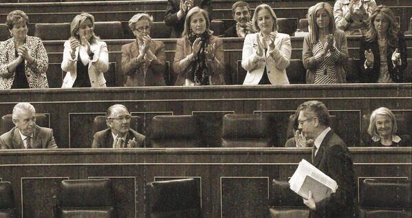 La foto, tan expresiva, es de otro momento en el que el ministro de Justicia, Alberto Ruíz Gallardón, anunciaba sus intenciones hace unos meses. Y ayer se dio como hecha en el transcurso de la sesión. Dicho queda, aunque en este caso viene a dar lo mismo porque con distintas ropas las mujeres de esta especie vienen teniendo la misma actitud desde Isabel La Católica. En la votación de este martes también hubo aplausos. De mujeres y de hombres del PP ante un Gallardón exultante de su éxito. Aquí están.