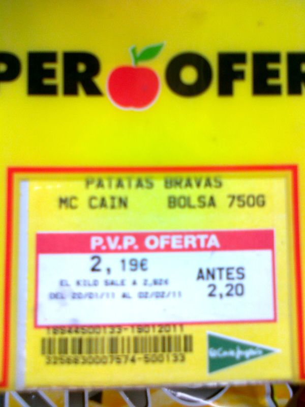 Cuando se acerca la hora de comer es temerario encontrarse en un supermercado. Así que mis ojos (espejo del estómago) se han abalanzado a la sección de platos preparados. He pedido una ración de ensaladilla rusa y otra de ensalada westafalia (que he pronunciado como es, en alemán: “vestafalia” y no “uesfalia” en inglés, lo que ha ocasionado que la dependienta me mirara de reojo con una leve sonrisa no precisamente de admiración por mi don de lenguas que sospecho no ha apreciado en absoluto). Eran las más baratas. Un cartel rezaba: 2,40 ración de 200 gramos. Algunas de sus vecinas triplicaban el precio.