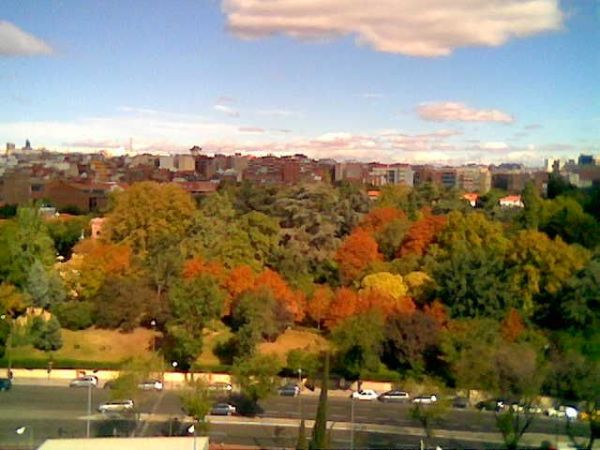 Siempre me ha parecido una propina de parque. Los usuarios habituales se han acostumbrado sin duda, pero produce cierto impacto verles disfrutar del trozo que les quedó en los bordes, frente a ese campo casi vacío por lo general. Caminar, jugar al fútbol, subir a las instalaciones del parque infantil, o sentarse, con esa vista.