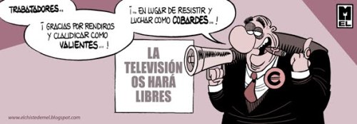 En la televisión ya es difícil que se pueda esbozar una idea completa y, eso, en ardua pugna con tertulianos carcas o agitadores del espectáculo. Salvo en la televisión del PP, TVE, a cuyos (presuntos) debates solo les falta el té con pastas sobre tapetes de organdí. Es la televisión que aún entiende los “De matute” y “Bálsamos de Fierabrás” de su candidato, Rajoy. Y tampoco es eso.